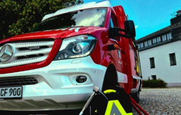 Am 09.07.2025 wurde unsere Drehleiter gegen 18:22 Uhr zu einer Tragehilfe für den Rettungsdienst nach