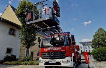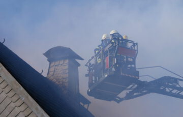 Am 11.07.2025 wurde unsere Drehleiter gegen 03:37 Uhr zu einem Wohnungsbrand in den Marienberger Ortsteil