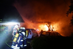 In der Nacht des 24.05.2023 gegen 00:53 Uhr wurden wir zusammen mit der FF Oberneuschönberg zu einem Carportbrand auf die Damaschkestraße in Olbernhau durch die IRLS Chemnitz alarmiert. Als wir an der Einsatzstelle eintrafen brannte das Carport und zwei PKW in voller Ausdehnung. Der Giebel des angrenzenden Wohnhauses hatte auch bereits Feuer gefangen. Zwei Trupps unter Atemschutz haben sofort mit der Brandbekämpfung begonnen und konnten so das Feuer am Hausgiebel unter Kontrolle bringen, danach wurde mit den Löscharbeiten am Carport fortgefahren. Weitere Kräfte der Ortfeuerwehren aus Niederneuschönberg, Blumenau, Kleinneuschönberg und ein RTW wurden nachalarmiert. Es musste eine cirka 250 Meter lange Wasserversorgung vom Löschteich am alten Schlachthof bis zur Einsatzstelle aufgebaut werden. Dazu musste auch die Bahnstrecke zwischen Olbernhau und Pockau für den Zugverkehr gesperrt werden. Nach cirka vier Stunden war der Brand gelöscht und wir haben im Gerätehaus die Fahrzeuge wieder bestückt und die Einsatzbereitschaft wieder hergestellt. Bei dem Brand wurden zum Glück keine Personen verletzt. Es entstand jedoch laut Polizei ein Sachschaden von cirka 100.000 Euro. Die Kriminalpolizei hat die Ermittlungen zur Brandursache aufgenommen.