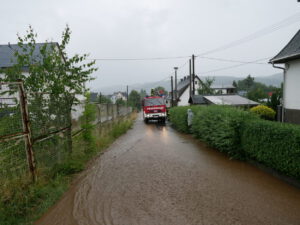 Am 30.06.2023 gegen 16 Uhr wurden wir zusammen mit der FF Kleinneuschönberg zu einem übergelaufenen Regenauffangbecken oberhalb des Stadtgutweg in Olbernhau alarmiert.