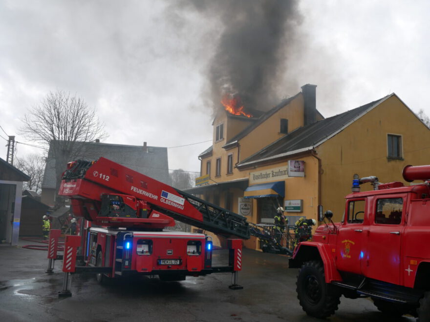 Am 31.03.2026 wurden wir gegen 12:52 Uhr mit unserer Drehleiter zu einem gemeldeten Gebäudebrand nach Haselbach alarmiert. Nach einer ersten Lageerkundung entschied sich die zuerst