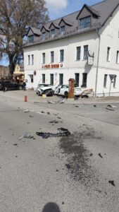 Im weiteren Verlauf reinigten wir den Kreuzungsbereich und beseitigten Splitter sowie Trümmerteile von der Fahrbahn, um die Verkehrssicherheit wiederherzustellen.