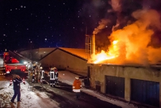 Die Feuerwehr Olbernhau wurde am 06.01.2016 gegen 04.30 Uhr gemeinsam mit mehreren Ortsfeuerwehren zum Großbrand nach Blumenau alarmiert. Bei unserem Eintreffen hatte sich der Brand im Mittelbau schon so weit ausgebreitet, dass die Flammen bereits das Dach durchschlagen haben. Durch den gezielten Löschangriff von mehreren Seiten konnten wir ein Übergreifen auf das Holzlager und die Produktion verhindern. Der Einsatz dauerte bis in die Nachmittagsstunden.