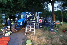 Am Abend, des 23.09.2022 um 18:44 Uhr wurden wir gemeinsam mit der FF Oberneuschönberg,der FF Heidersdorf und dem Rettungsdienst zu einem Verkehrsunfall nach Hirschberg alarmiert. Das Einsatzstichwort lautete „eingeklemmte Person, Traktor vs. PKW“ unsere Aufgabe bestand darin, den Traktorfahrer mittels Rettungsplattform aus seinem Führerhaus zu befreien. Die Besatzung des ELW bekam den Auftrag mittels der Drohne eine verletzte und unter Schock stehende Person, welche sich von der Unfallstelle entfernt hatte, zu finden. Unterstützt wurde die Suche durch mehrere Bodentrupps, sodass die Person nach kurzer Zeit gefunden wurde. Die Feuerwehr Heidersdorf befreite die eingeklemmte Person im PKW. Alle Rettungsmaßnahmen wurden in enger Zusammenarbeit mit dem Notarzt und dem Rettungsdienst vorgenommen. Nach dem Ende der Einsatzübung gab es noch eine gemeinsame Auswertung im Gerätehaus der FF Oberneuschönberg.