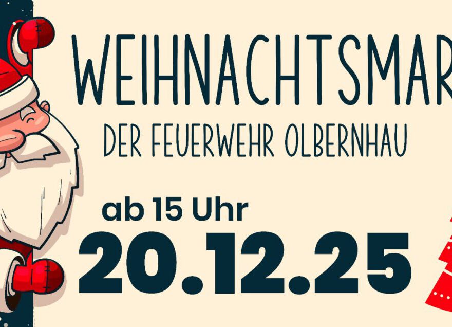 Am 20. Dezember 2025 lädt die Feuerwehr Olbernhau ab 15 Uhr herzlich zum Weihnachtsmarkt am Gerätehaus in der Bahnhofstraße ein! Erlebt bei uns die Magie der Weihnachtszeit in gemütlicher Atmosphäre und lasst euch von erzgebirgischen Spezialitäten wie Latschen, hausgemachten