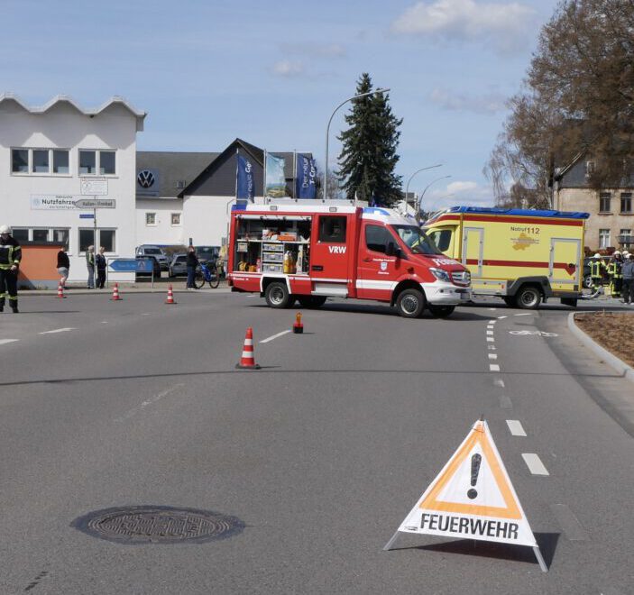 Am 06.04.2026 wurden wir um 12:53 zu einem Verkehrsunfall mit auslaufenden Betriebsmitteln auf die Grünthaler Straße alarmiert. Vor Ort sicherten wir die Einsatzstelle ab, indem