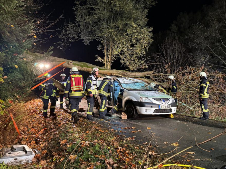 Am 23.10.2025 wurden wir gegen 19 Uhr durch die IRLS Chemnitz zu einem gemeldeten Baum auf PKW mit unklarer Lage auf die Rungstockstraße alarmiert. Im